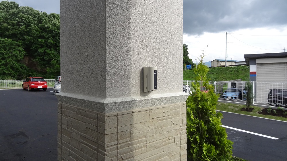 EV(電気自動車) 用の200V通常充電用コンセントを車寄せの柱に設けております。