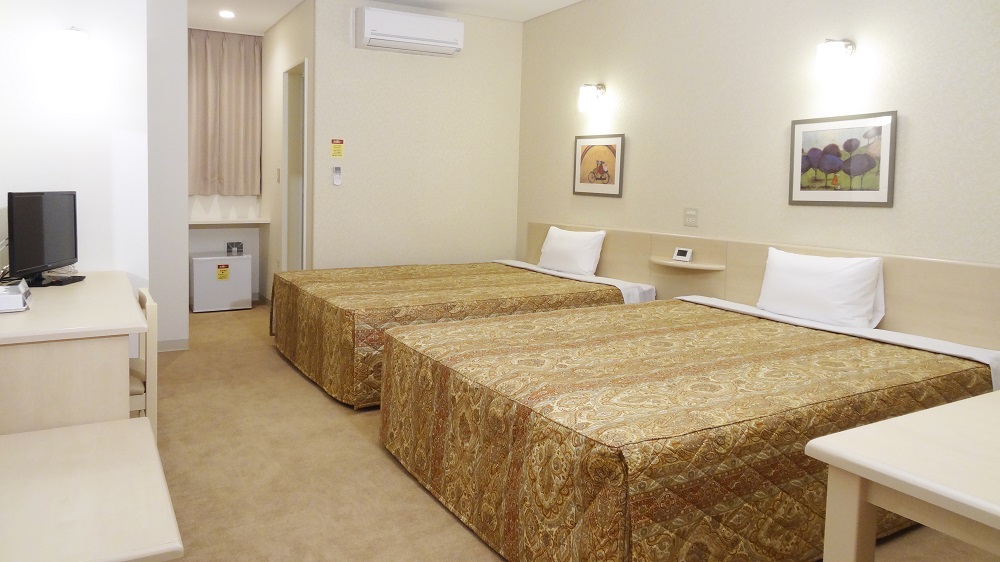 全室にクイーンサイズベッドを2台設置しております。ひとつのベッドが幅154cmでダブルベッドより一回り大きいサイズですので、それぞれに2名は十分お休みいただけます。したがって、1名からご家族4~6人まで1室でお泊りいただけますが、ご希望により、エキストラベッド(シングルサイズ)をご用意させていただきます(1台2,200円/1泊)。