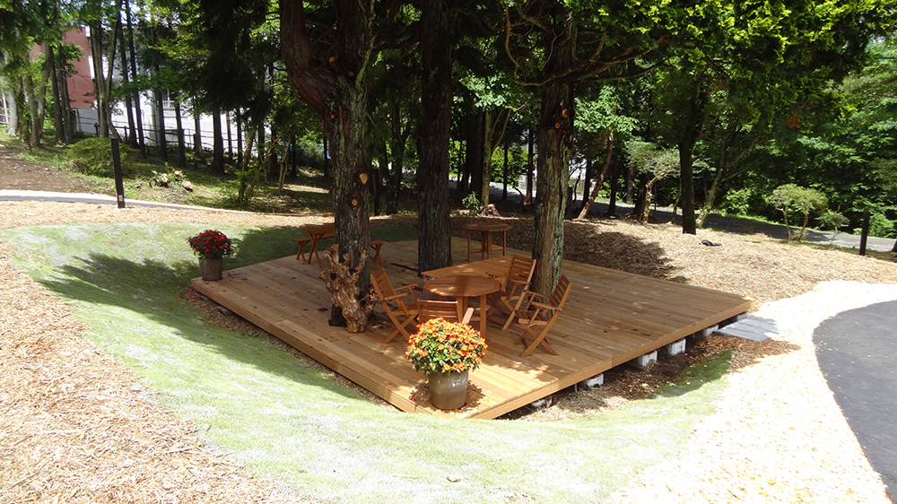 1800坪の敷地は、正面に金時山を望む、自然豊かな林の中遊歩道もあり、別荘代わりにのんびり過ごしていただけます)。