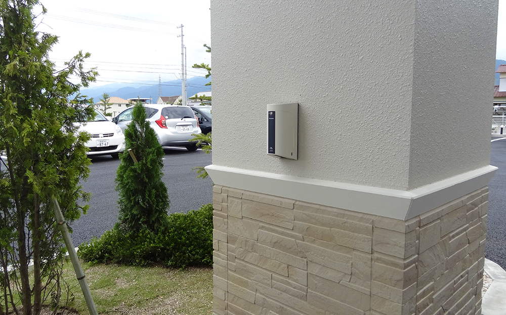 EV(電気自動車) 用の200V通常充電用コンセントを車寄せの柱に設けております。