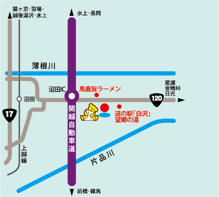 関越自動車道「沼田IC」より、国道120号線を尾瀬・金精峠方面へ約2km、右側。