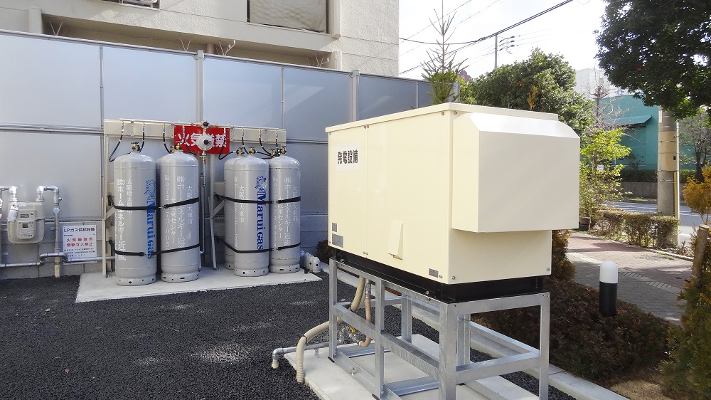 非常用のLPG発電機を設置しています。