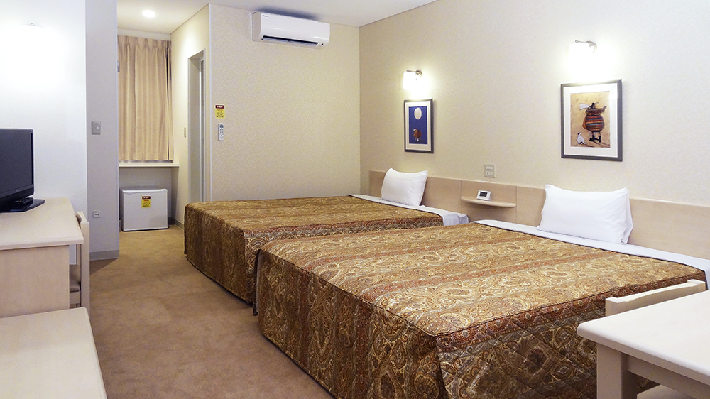全室にクイーンサイズベッドを2台設置しております。ひとつのベッドが幅154cmでダブルベッドより一回り大きいサイズですので、それぞれに2名は十分お休みいただけます。したがって、1名からご家族4~6人まで1室でお泊りいただけますが、ご希望により、エキストラベッド(シングルサイズ)をご用意させていただきます(1台2,200円/1泊)。