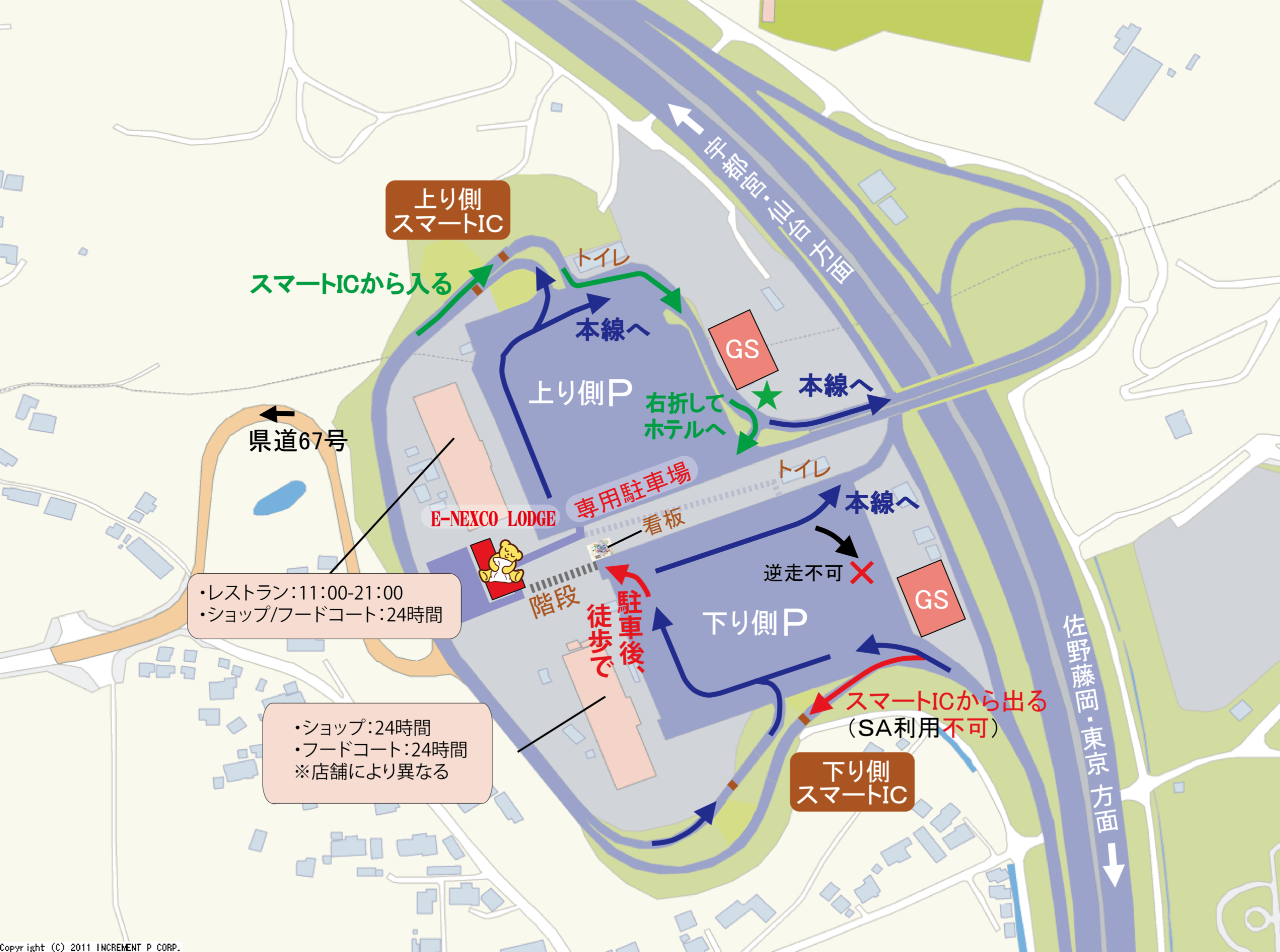 「佐野SA店」は、佐野サービスエリアの上り側敷地内にありますが、下り側にも隣接しているため、両方向からご利用いただけます。