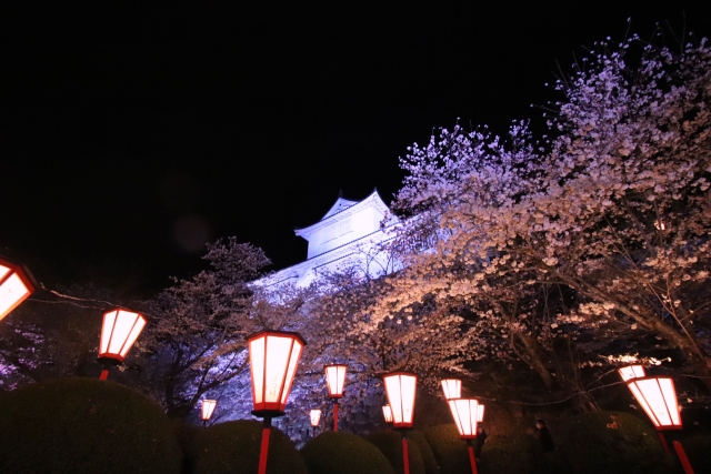 桜の種類が多いので、いろいろな表情の景色を4月下旬まで楽しめます。珍しい赤瓦の天守閣とのマッチも美しい。鶴ヶ城桜さくらまつり2026年4月上旬から5月上旬に開催されるようです(確認中)。