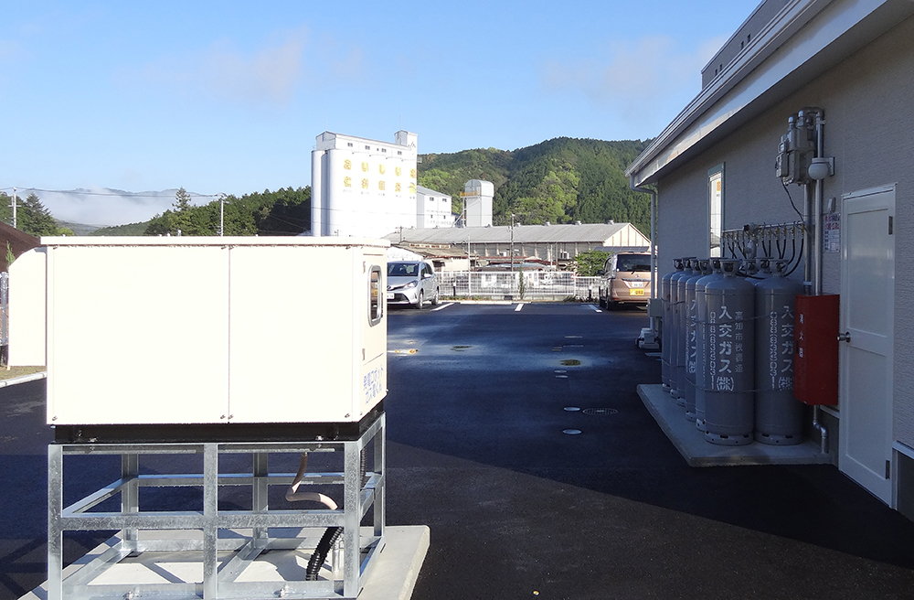 万一停電の際は、自動的に発電機が起動し、LPGをエネルギー源とし、少なくとも数日は電気を供給します。