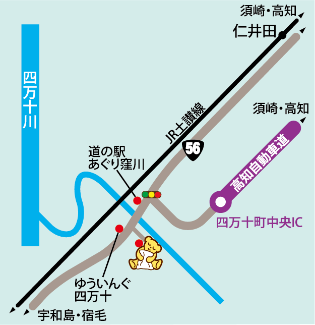 高知自動車道・四万十町中央インターより、国道56号を左折し中村方面へ約300m進んだ左奥。